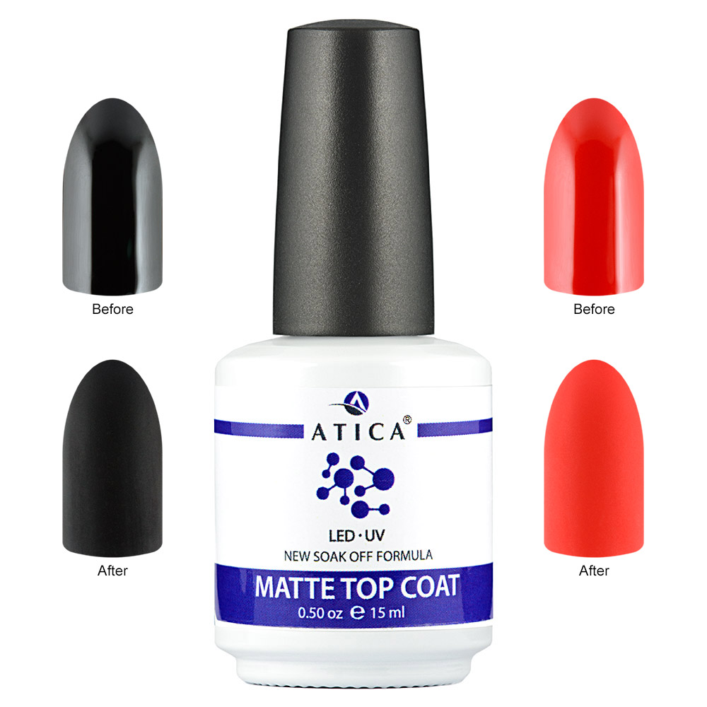 Atica Matte Top Coat (15 мл) – це професійне фінішне покриття для гель-лаку, призначене для створення стійкого та модного матового ефекту.
