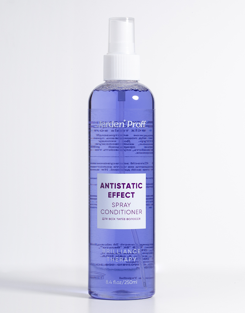 Антистатичний спрей-кондиціонер Jerden Proff забезпечує м’якість, гладкість та надійний захист волосся. Він легко наноситься, миттєво розгладжує пасма і запобігає їх дратівливому налипанню одне до одного. Додатково спрей зволожує волосся та створює невидимий захисний бар’єр від зовнішніх чинників.