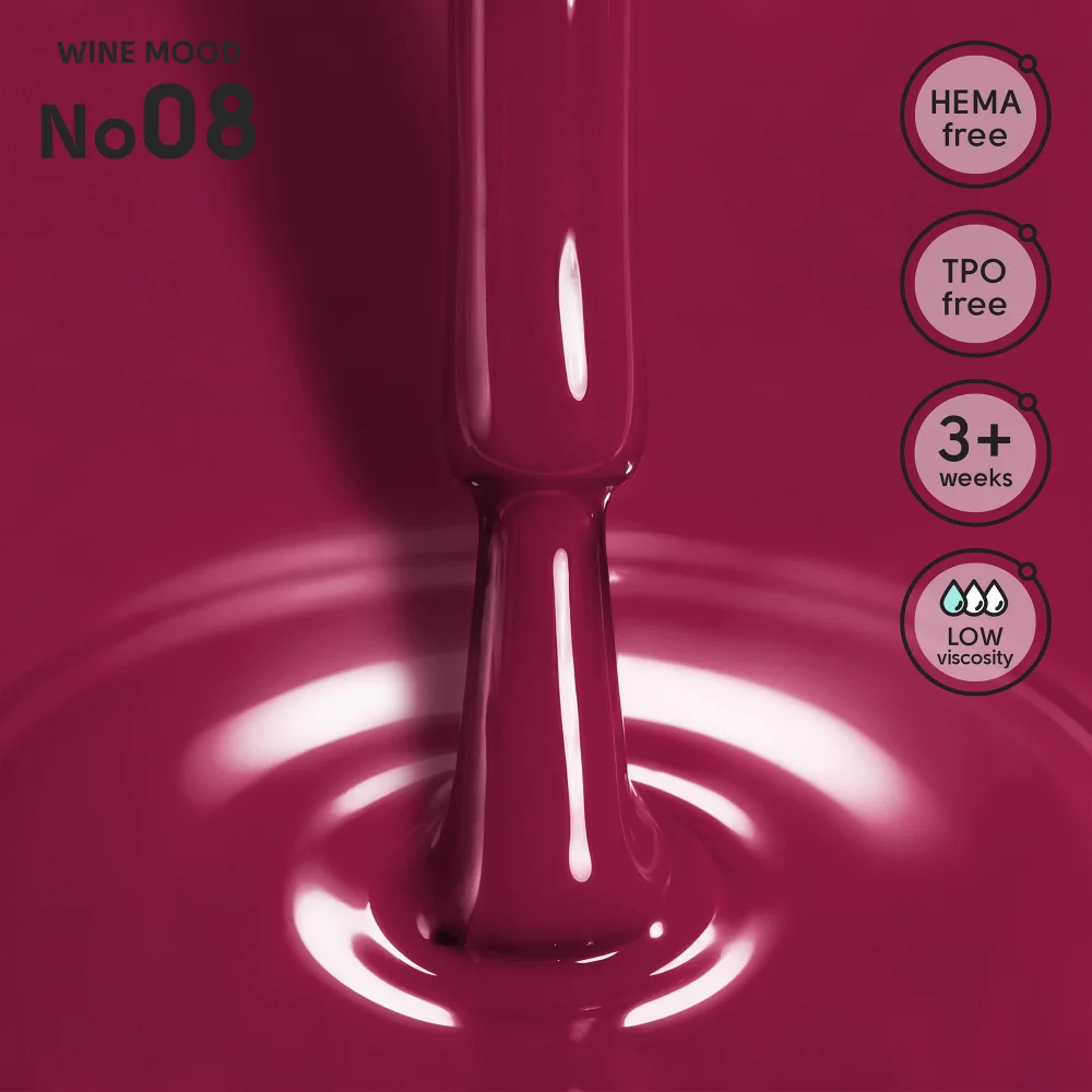 • HEMA FREE: Формула не містить мономеру HEMA (найпоширенішого алергену в нігтьовій індустрії), що значно знижує ризик виникнення подразнень та алергічних реакцій.