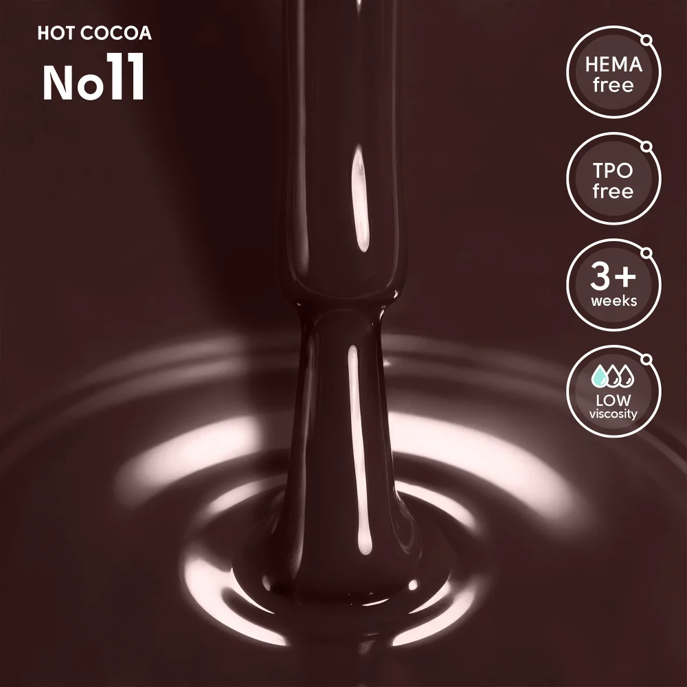 • HEMA FREE: Формула не містить мономеру HEMA (найпоширенішого алергену в нігтьовій індустрії), що значно знижує ризик виникнення подразнень та алергічних реакцій.