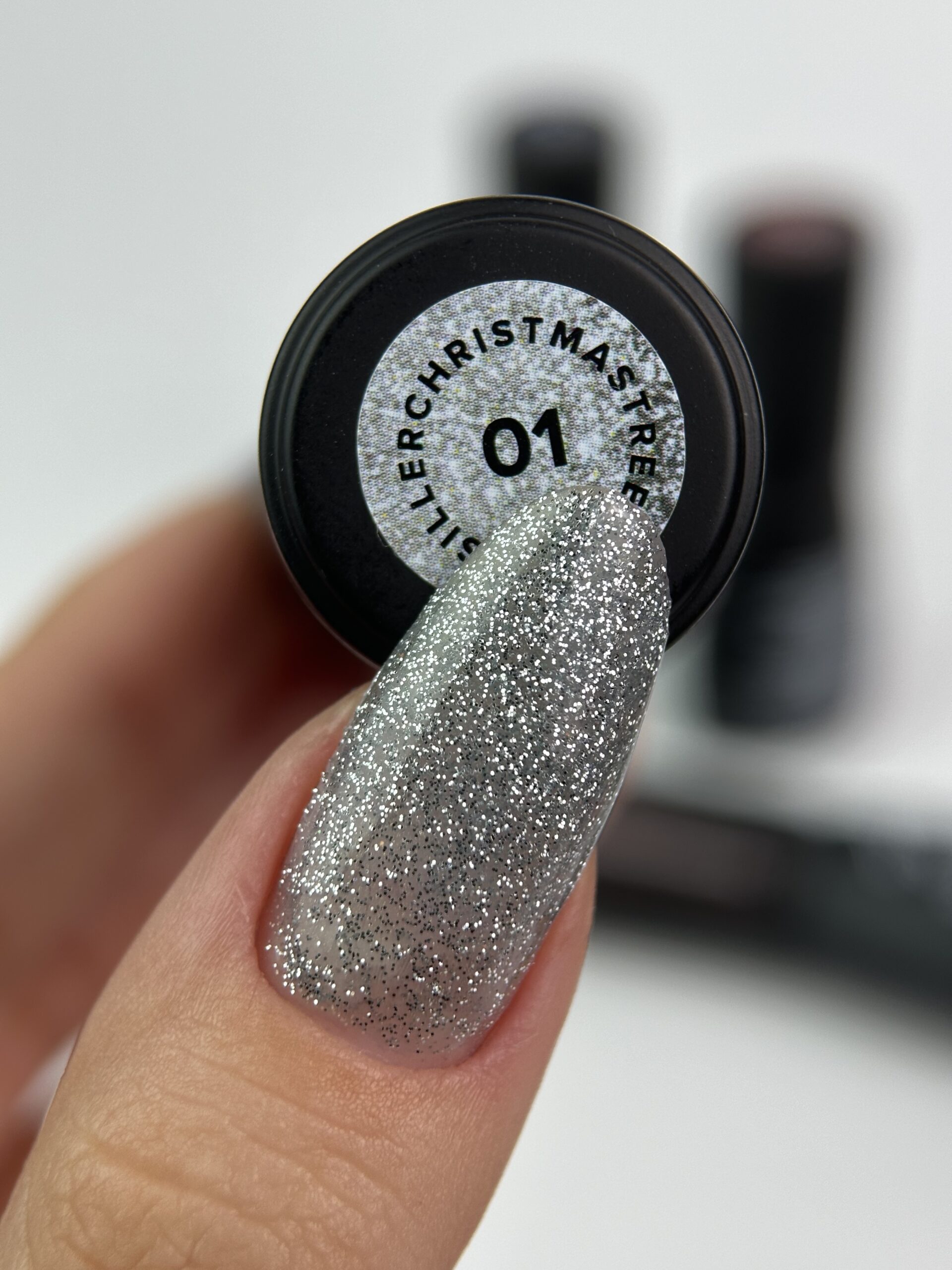 • Колір та Ефект: Це відтінок сріблястого кольору (Silver) з високою концентрацією блискучих мікрочастинок (мікроблиск, глітер). Він створює на нігтях ефект іскристого снігу, інею або святкового конфеті, що ідеально підходить для новорічного та зимового манікюру.