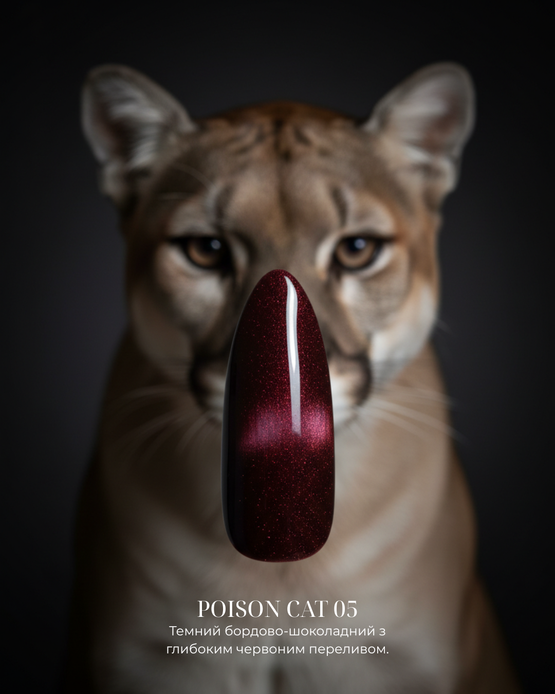 Магічний градієнт: Використовуйте два відтінки Poison на одному нігті, розтягуючи магнітний блиск від кутикули та від вільного краю до центру. Акцентний дизайн: Нанесіть Poison лише на один-два пальці у поєднанні з глибоким однотонним емалевим покриттям для створення елегантного акценту.
