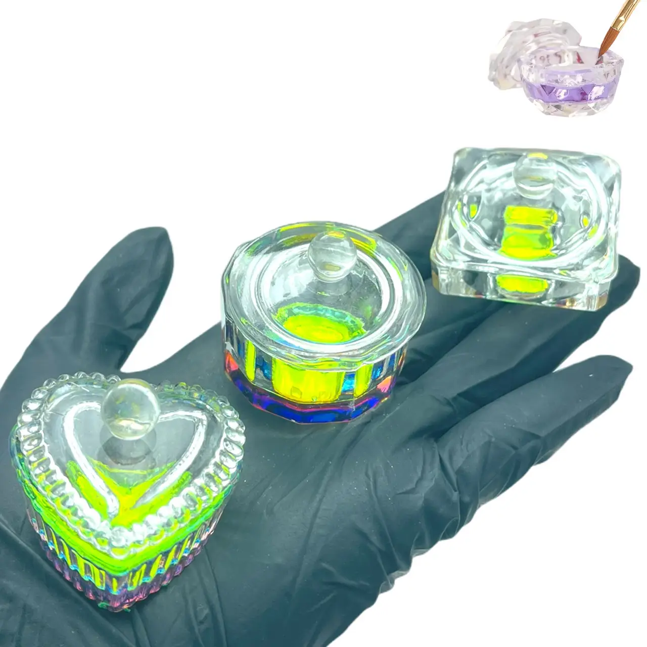 Склянечка з кольоровим дном для мономеру, гель-лаку, фарби, з кришечкою, LB748